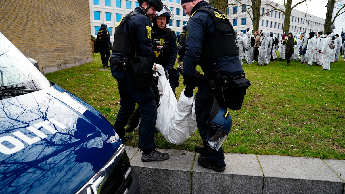 Siges efter man har tæsket løs på demonstranter som bare sad foran en bygning.