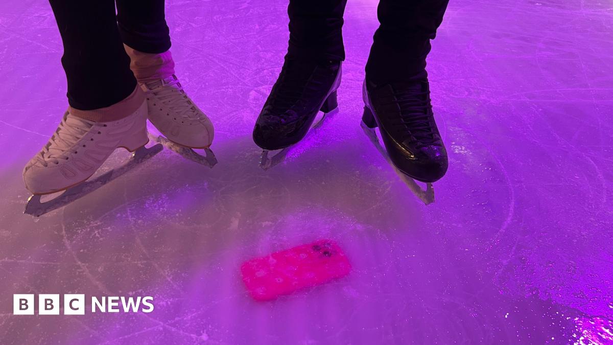 It was not until the following day that one of the team spotted the bright pink object - borrowed by the worker after he misplaced his own phone - frozen in the middle of the rink.