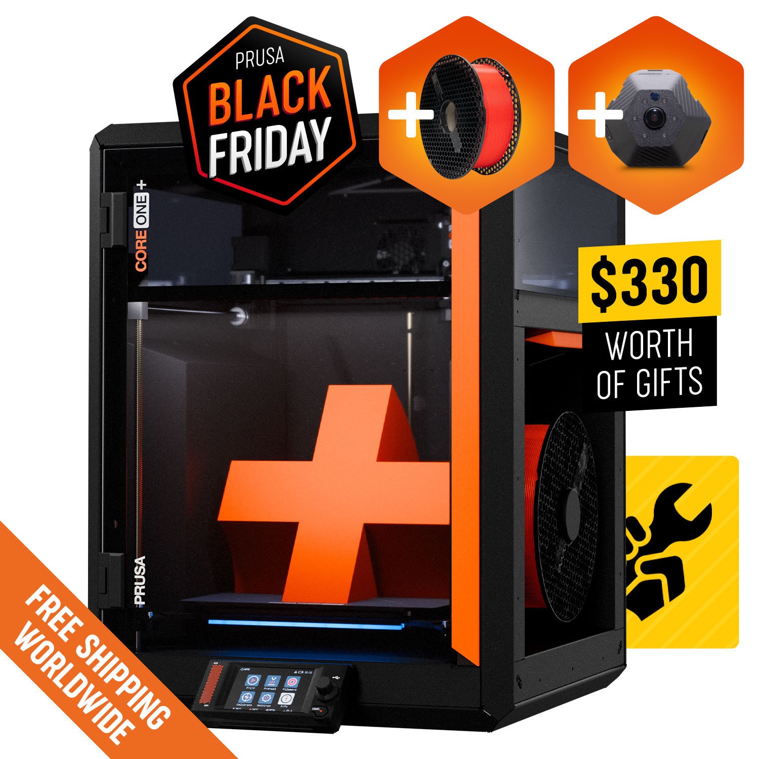 Prusa3D Core One assembled from kit ( https://www.prusa3d.com/product/prusa-core-one-kit/ ) in roughly 36 hours, including 5 hours of sleep and frequent toddler-herding