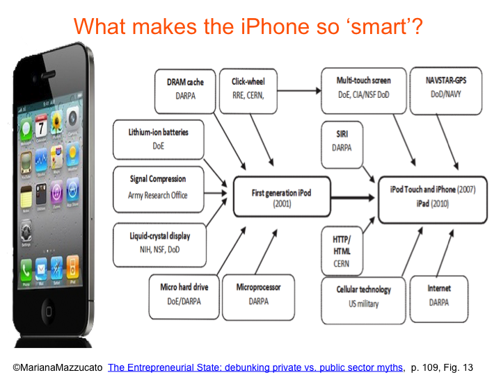 Also capitalists don’t have an appetite for the kind of risk involved in inventing touchscreens or GPS. That stuff all comes from public funding. Capitalists just figure out how to monetize it.